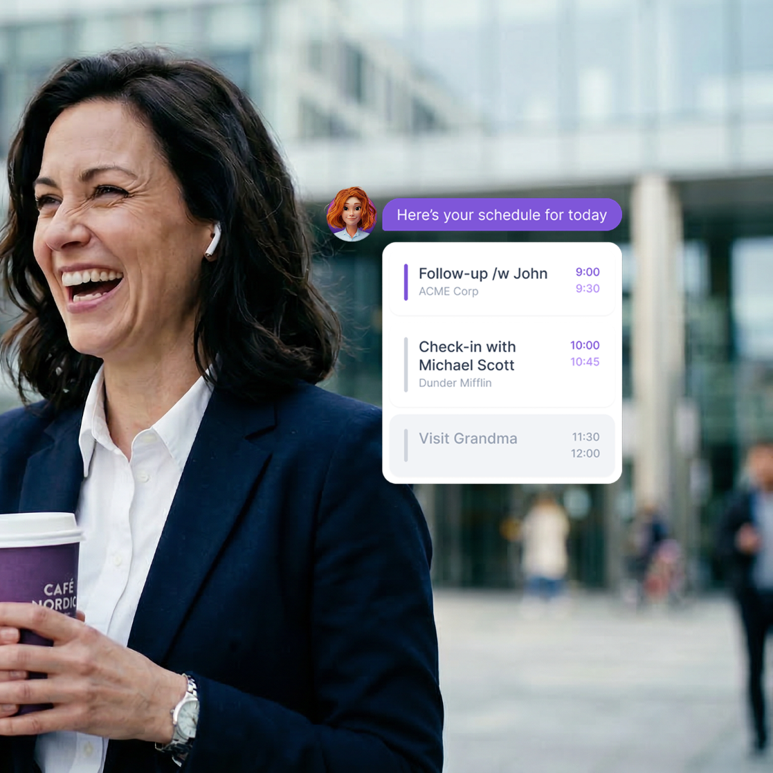 She proactively lines up your priorities, surfaces key insights, and keeps your day running effortlessly.